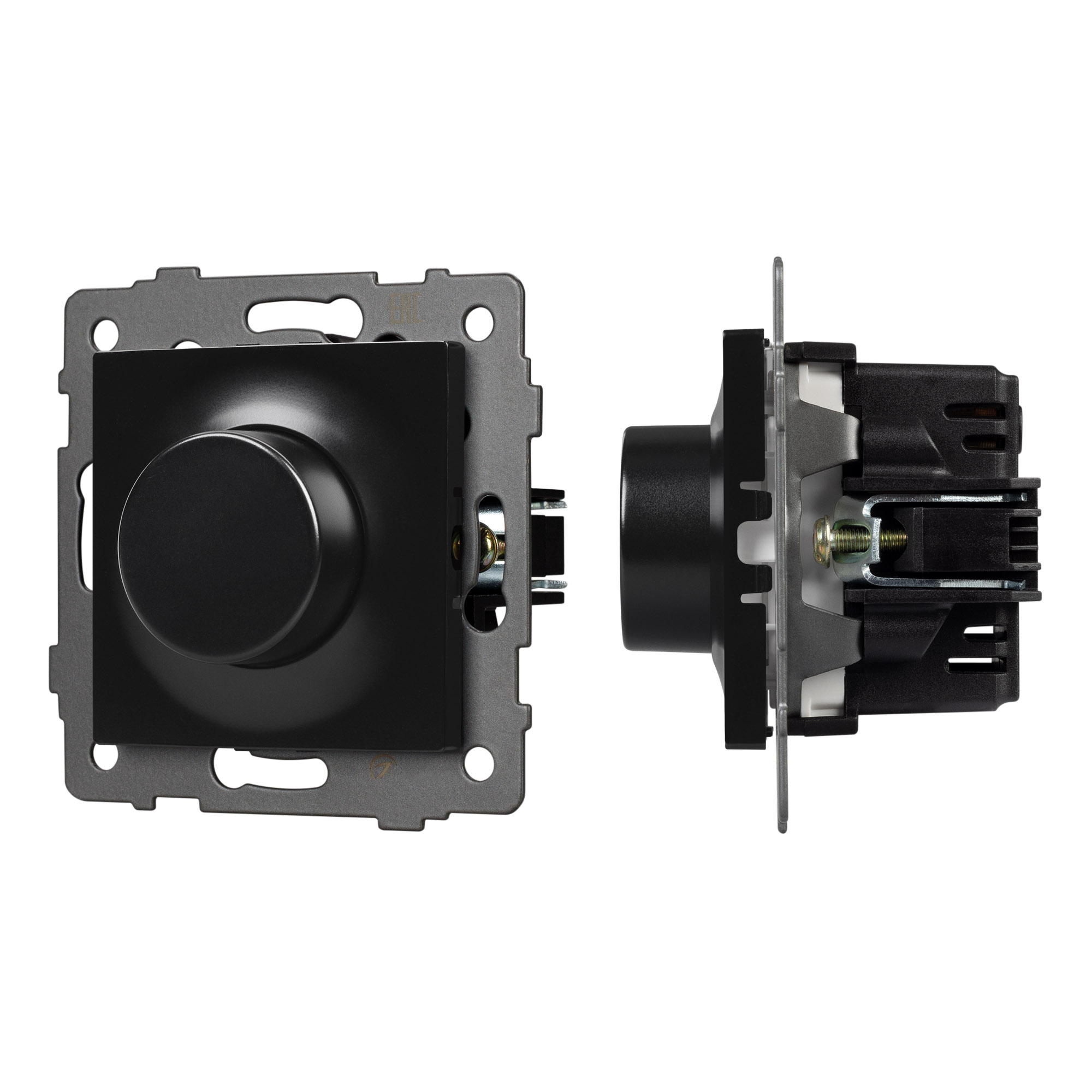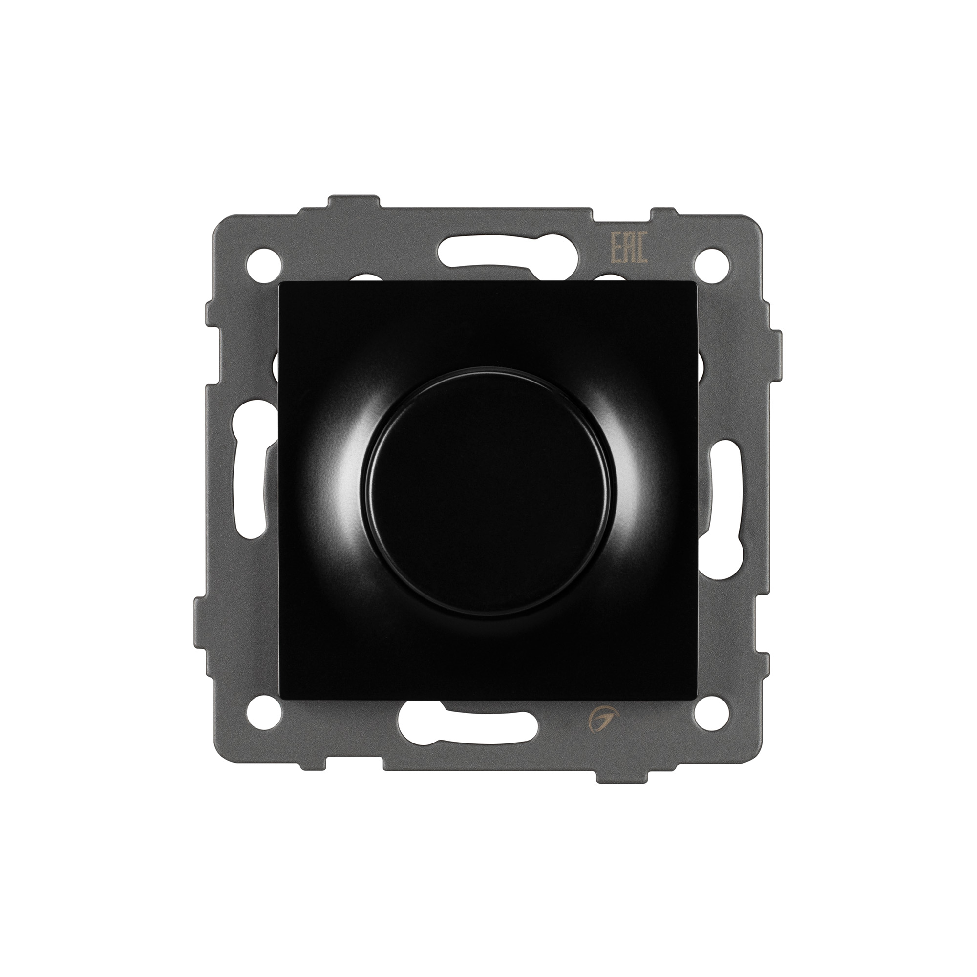Механизм регулировки света на 1 пост. Цвет - черный. Без фронтальной рамки. Уровень пылевлагозащиты IP20. Механизм устанавливается в стандартный круглый подрозетник. Максимальная нагрузка 500 Вт только для ламп накаливания и галогенных, 150 Вт только для энергосберегающих и светодиодных ламп. Габаритные размеры: длина 71 мм, ширина 71 мм, высота 52 мм. Гарантийный срок 10 лет.