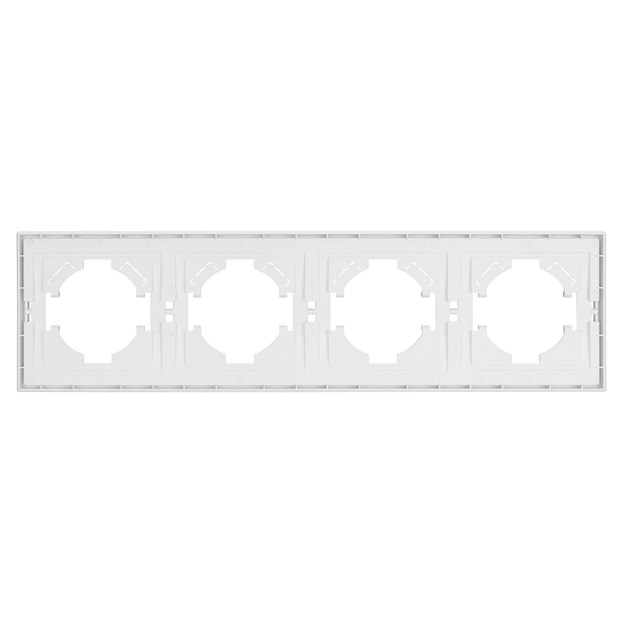 Рамка пластиковая на 4 поста, под встраиваемый механизм. Цвет - белый. Среднего уровня герметичности IP20. Ориентация монтажа горизонтальная.