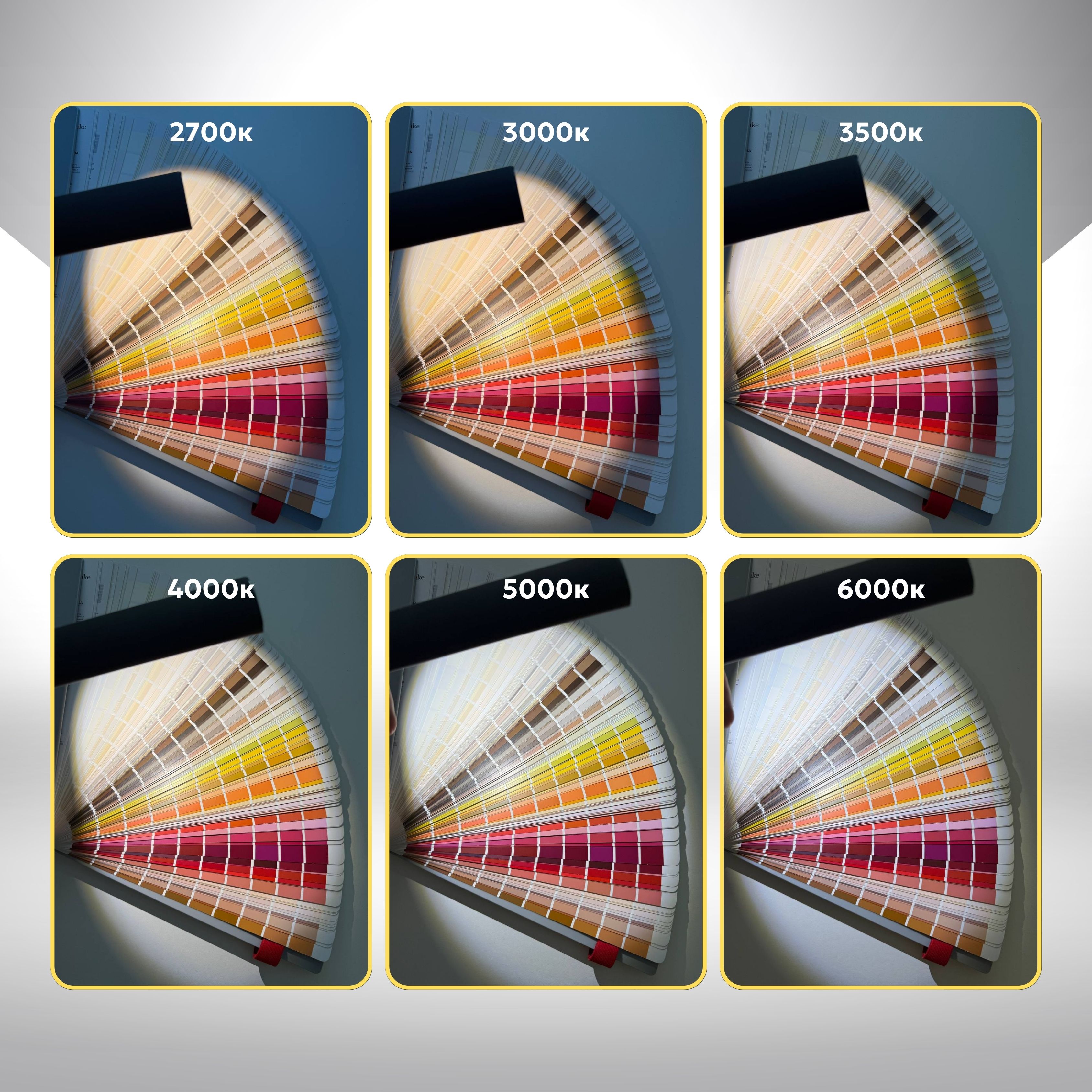 White | Белый 6000 K, Day | Дневной 5000 K, Day | Дневной 4000 K, Warm | Тёплый 3500 K, Warm | Тёплый 3000 K, Warm | Тёплый 2700 K |