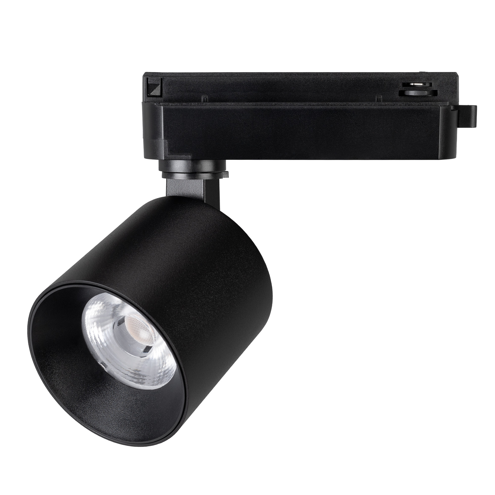 Светильник для однофазных треков, 16 Вт. Цвет свечения ДНЕВНОЙ 4000K, световой поток 1600 лм, угол 20°, CRI>90. Корпус круглый, металл, цвет черный, IP20. Размеры Ø74x69,6 мм. Монтаж на трек 1-фазный. Входное напряжение AC220-240V, мощность 20 Вт. Драйвер встроенный (25-40V, 500 mA).Пульсация <1%.